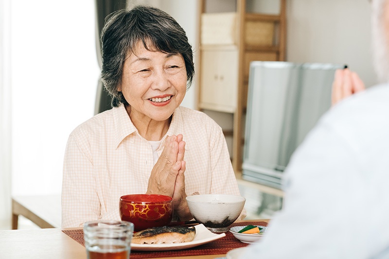 温かいご飯をみんなで食べる時間は、交流の場にもなり、食事そのものが楽しみのひとつになるよう工夫しています。